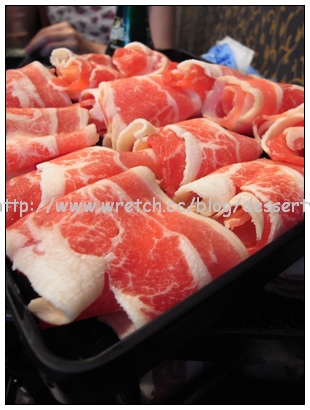 店家提供的肉類有牛肉、豬肉、羊肉和雞肉共6種,第一回可以每種全上,也可以直接挑想吃的口味,每種肉片看起來都閃閃發光,果然,在鍋中涮個幾下,入口盡是香甜,除了雞肉較為乾澀外,每種肉類都很好吃。