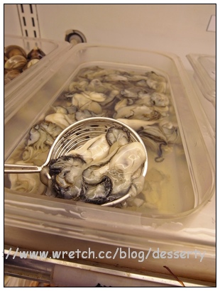 看到不少人說來這邊一定要大大品嘗海鮮,果然,這兒的海鮮真是超碩大的,鮮蚵和蛤蜊都大的驚人,新聞才在報導蚵仔都縮水了,這邊的鮮蚵竟與小花枝一樣大,驚人啊)))
