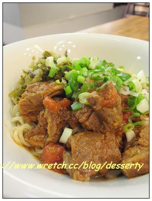 我點﹝蕃茄牛肉拌麵﹞,上頭給的牛肉塊很多,而且燉煮軟爛,好吃,和底部的麵條拌一拌,酸酸甜甜好滋味,突然覺得麵條份量不夠啦!