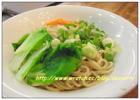 想不到這個麵條果然夠辣,吃一口我就眼淚直掉,但肉醬好香,忍不住又塞一口麵條,好吃~~不過吃到後面有點過乾,還好有蔬菜湯可以搭配。