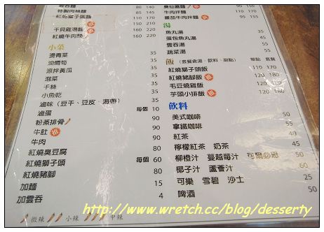 蠻溫馨的小店,即使快8點了,還是有8成的客人。瀏覽菜單,有湯麵、乾麵,也有賣飯,套餐多加60元,就可享有小菜、飲料、熱湯(或甜點),挺划算的。擔心吃太多,決定一個套餐,一個單點。